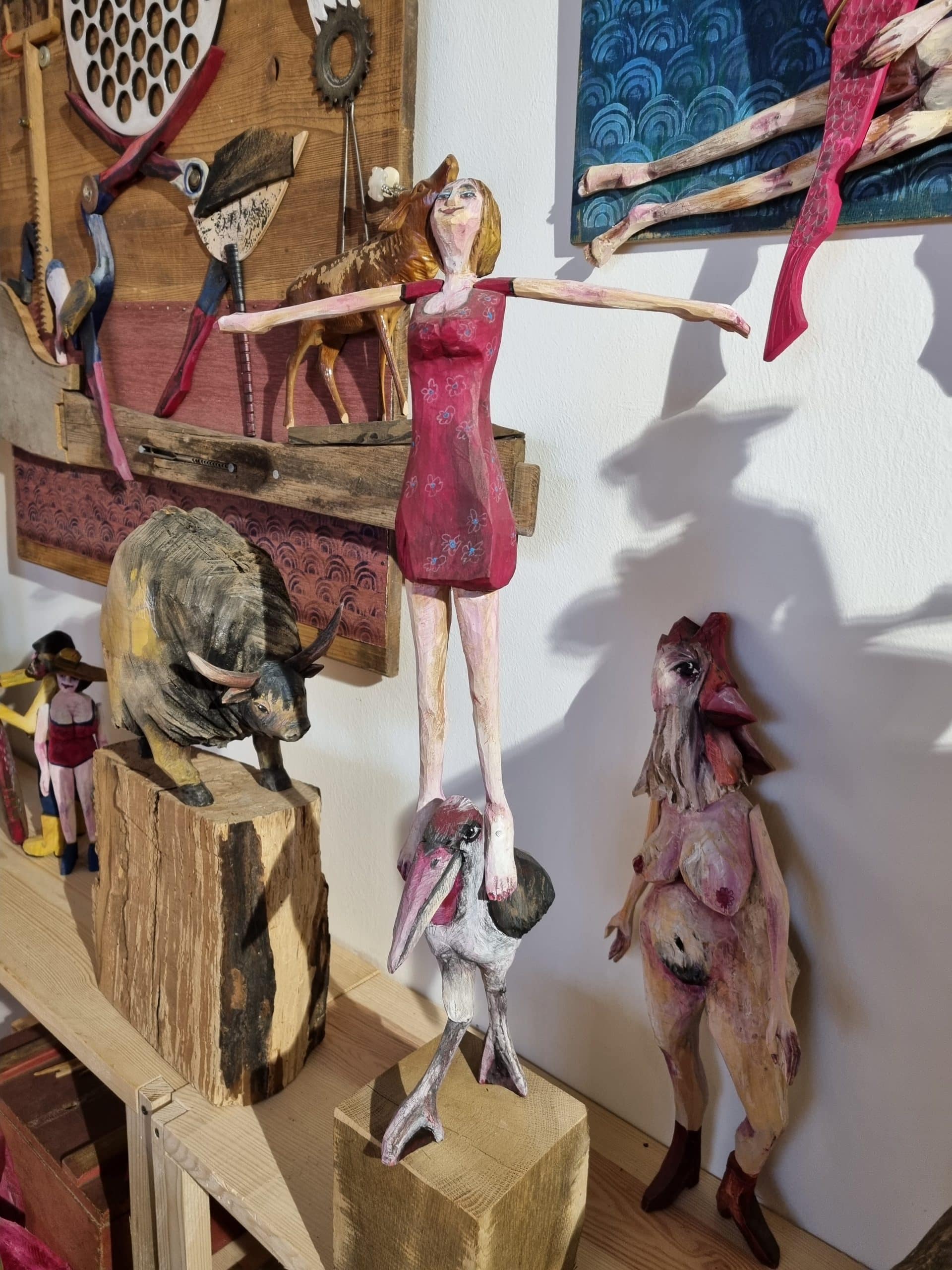 Es ist ein Spiel des Suchens und Findens in den realen und surrealen Welten der Gedanken der Künstlerin. Das Holz schenkt ihr dabei ganz freizügig seine Lebendigkeit. Mit Begeisterung entdeckt sie mit und in ihrer Kunst wieder und wieder neue Räume und die darin wohnenden Freiheiten.