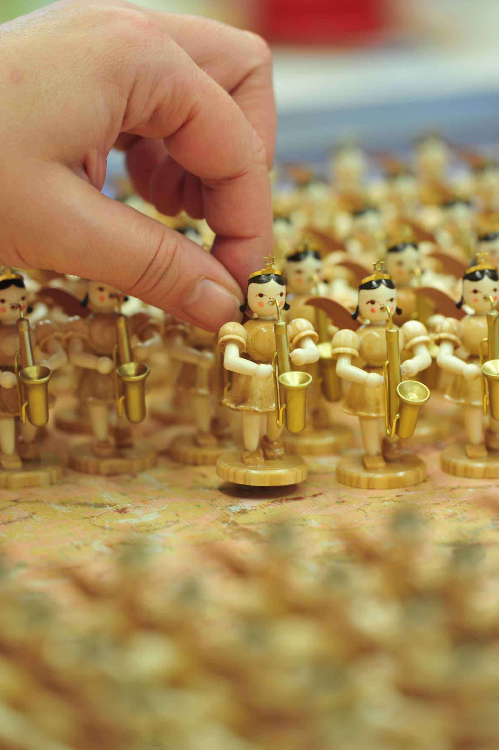 In dem alteingesessenen und traditionsbewussten Familienunternehmen erblicken jedes Jahr neue filigrane Engelfiguren das Licht der Welt, die mit klassischen und außergewöhnlichen Instrumenten ein großes Engelorchester bilden oder als Gabenbringer Jung und Alt erfreuen. Was sie aber wirklich unverwechselbar macht, sind ihre einzigartigen Röckchen, die in einem ganz speziellen Herstellungsverfahren im Hause produziert werden.