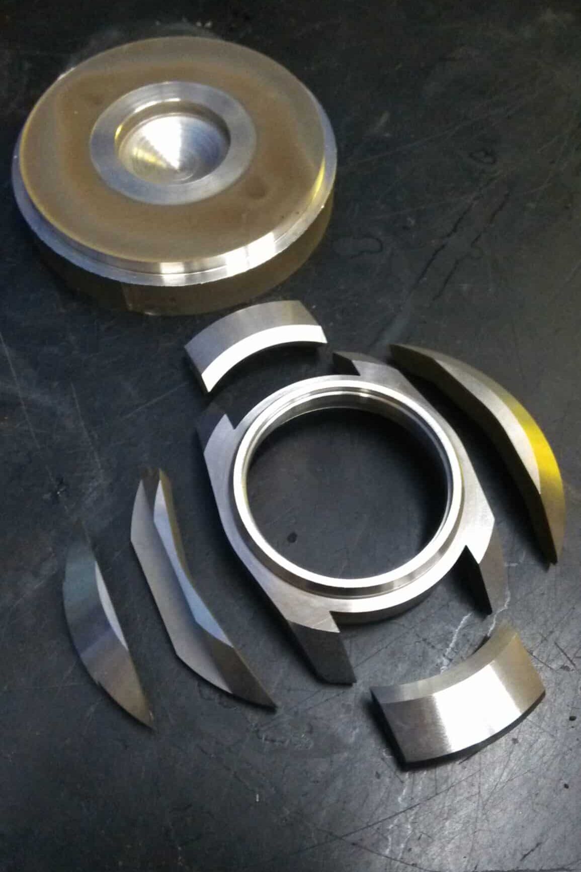 Uhrgehäuse aus Edelstahl auf technischen Zeichnungen, umgeben von weiteren Bauteilen.