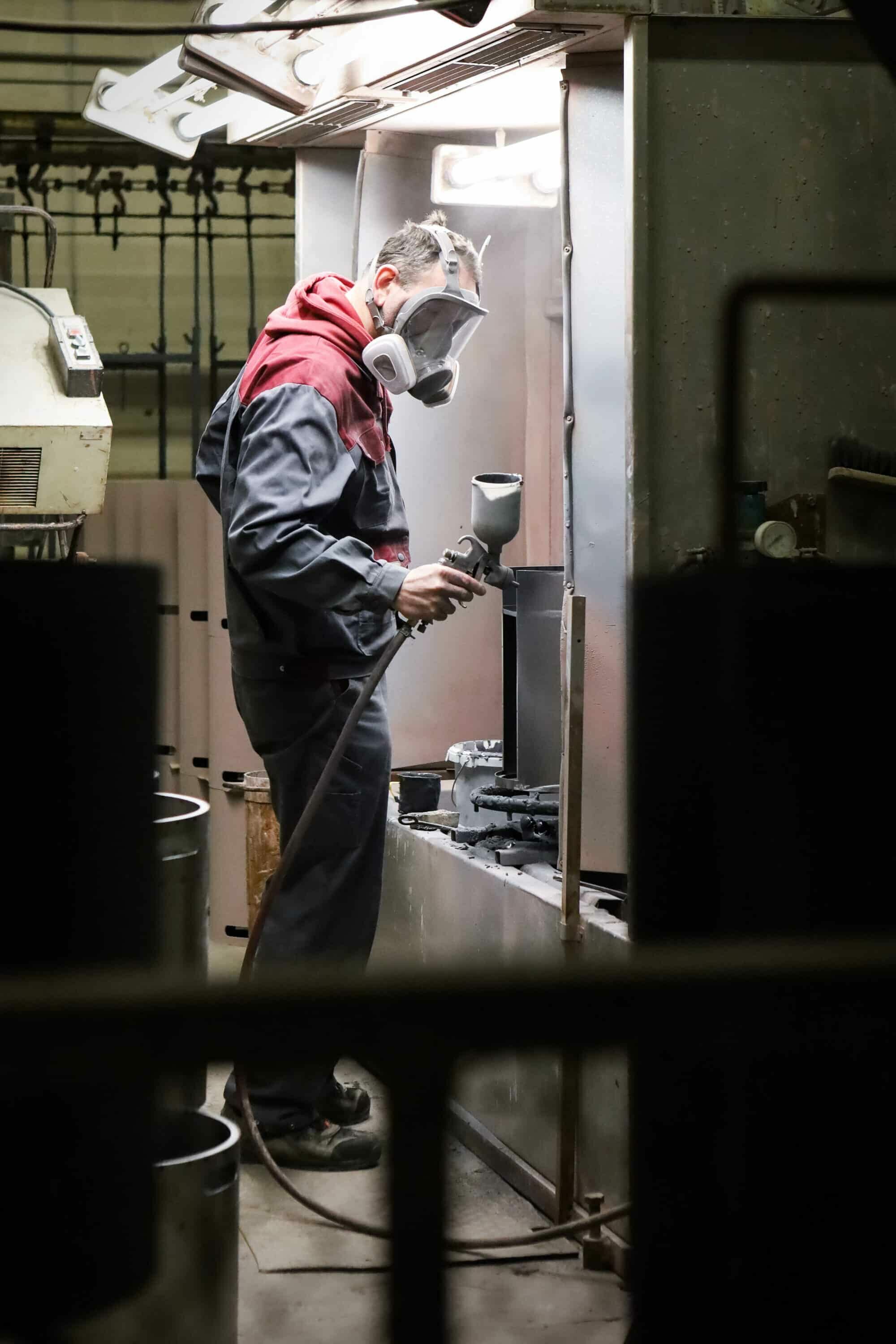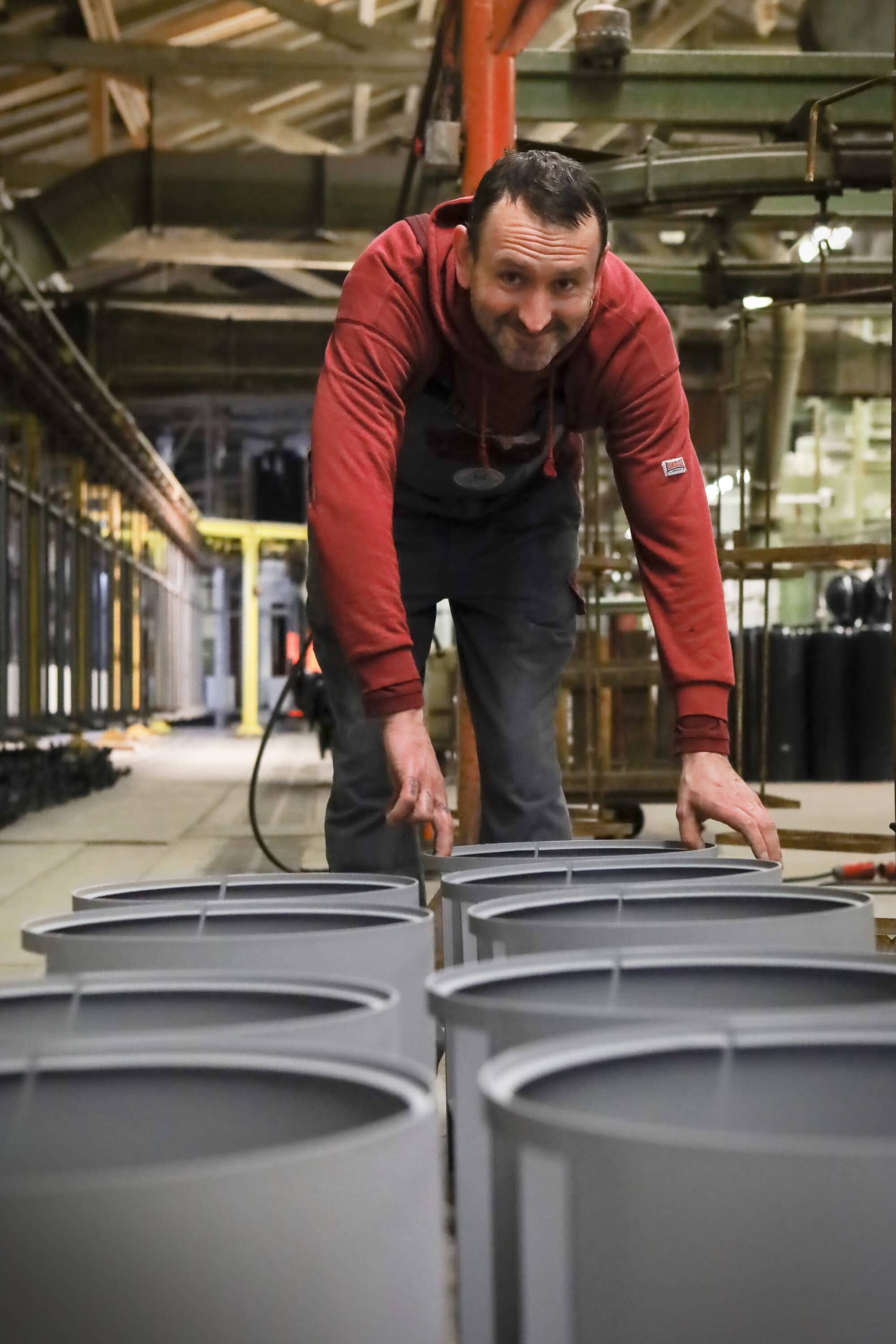 Die Bleche durchwandern zahlreiche Arbeitsbereiche bis der Oberofen mit Flammrohr und der Unterofen samt Aschekasten gefertigt sind. Die Emaille – die Schmelzglasmasse -, die im speziellen Brennofen in mehreren Schichten auf das Blech aufgebracht wird, gewährleistet die Trinkwasserqualität.