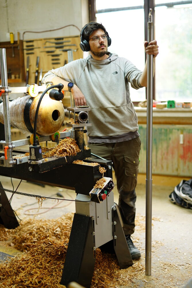 Auch wenn er durch seine Arbeit das Holz verändert, so prägt es durch seinen eigenen Charakter, und durch Verformungen die während dem Trocknen entstehen, die Form des Stückes.