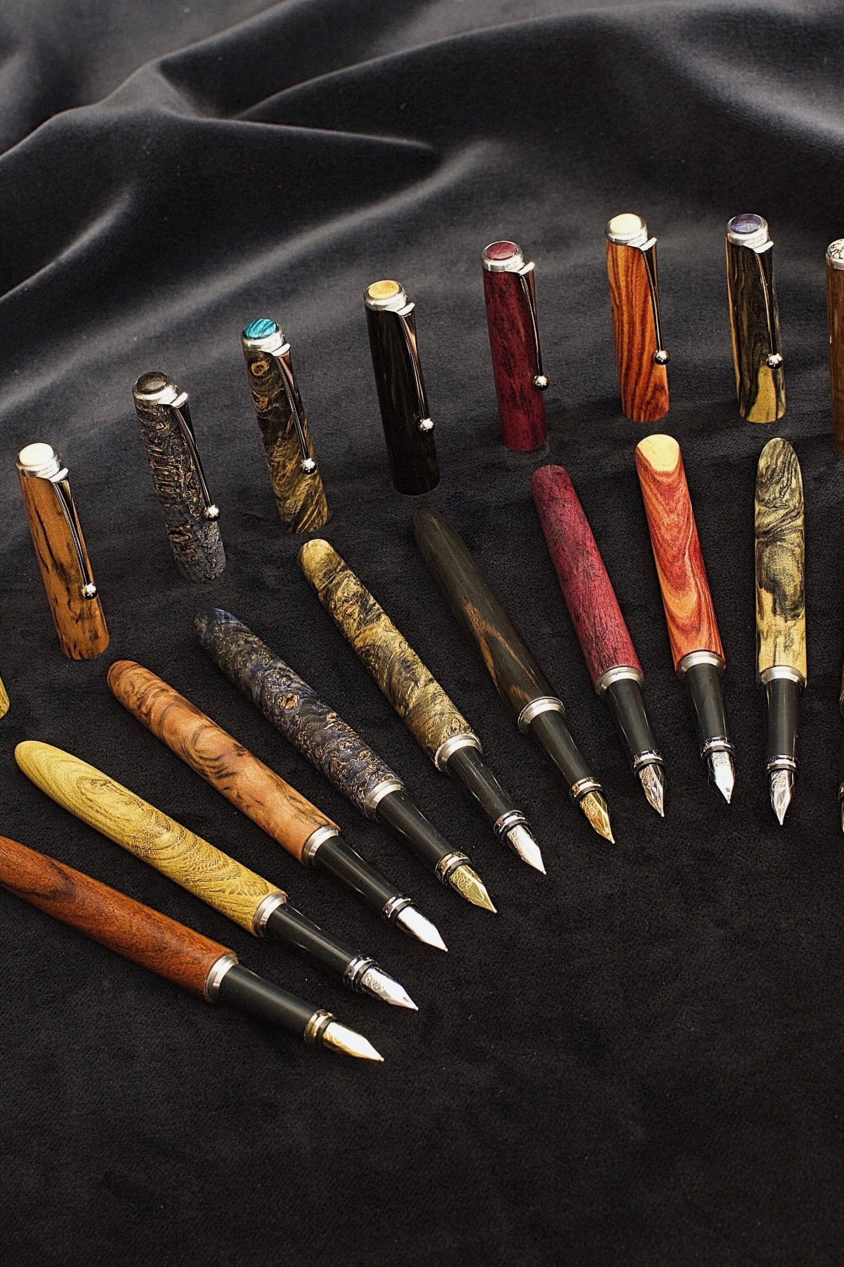 Angeregt durch den Bogenbau und die stetig wachsende Sammlung ausgefallener Hölzer aus aller Welt lag der Gedanke nahe, sich außerdem mit der Herstellung von Schreibgeräten zu beschäftigen. So entstehen in der Geigenbauwerkstatt nun auch Füllfederhalter, Kugelschreiber und Bleistifte in vielen Farben und Formen.