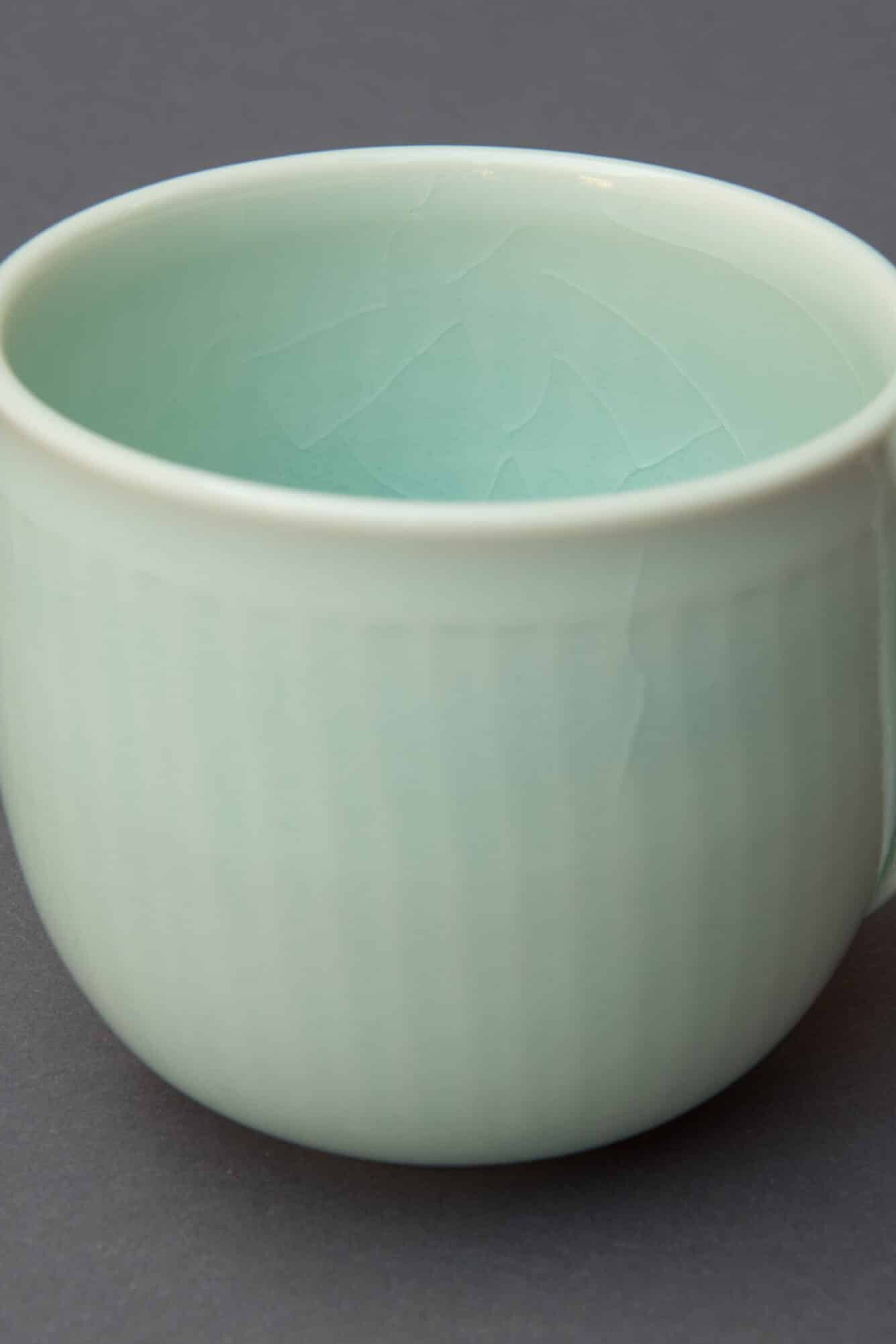 Im Jahr 2018 eröffnet Cordula Heusler ihre eigene Werkstatt in Freiburg St. Georgen. Hier entstehen kleine Serien aus gedrehtem Porzellan und Aufbaukeramik. Sie findet heraus, dass ihre seladonfarbene Glasur auch als Anflugglasur für andere Stücke im Ofen nutzbar ist.