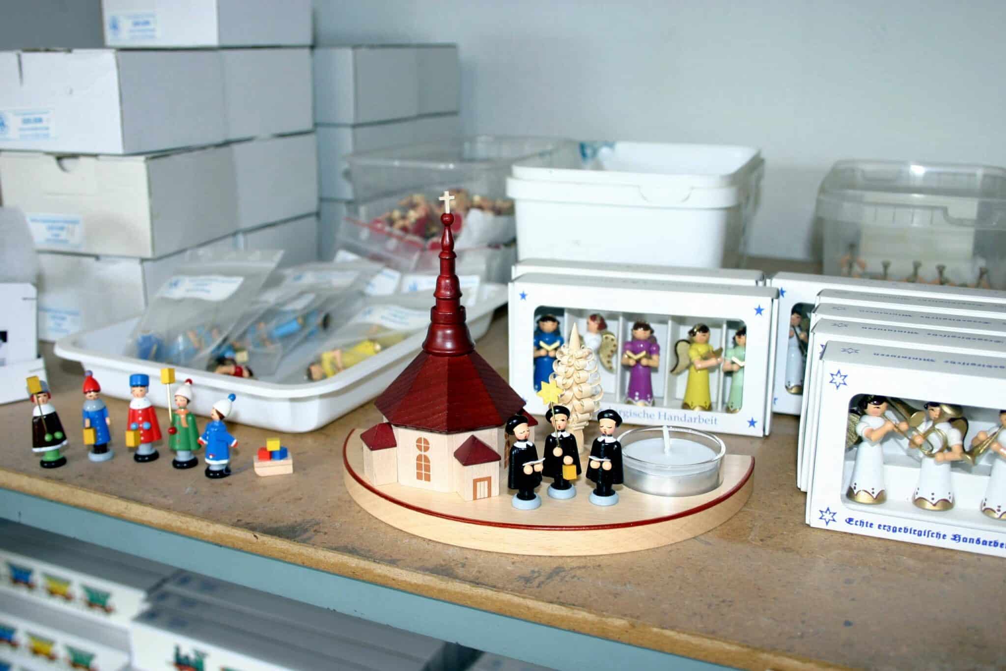 Seitdem ist typisch erzgebirgisches Kunsthandwerk wie Seiffener Kirche mit Kurrende, Kerzenhalter, Schwibbögen, Spieldosen, Pyramiden, Osterartikel und verschiedener Baumbehang prägend für den Familienbetrieb.