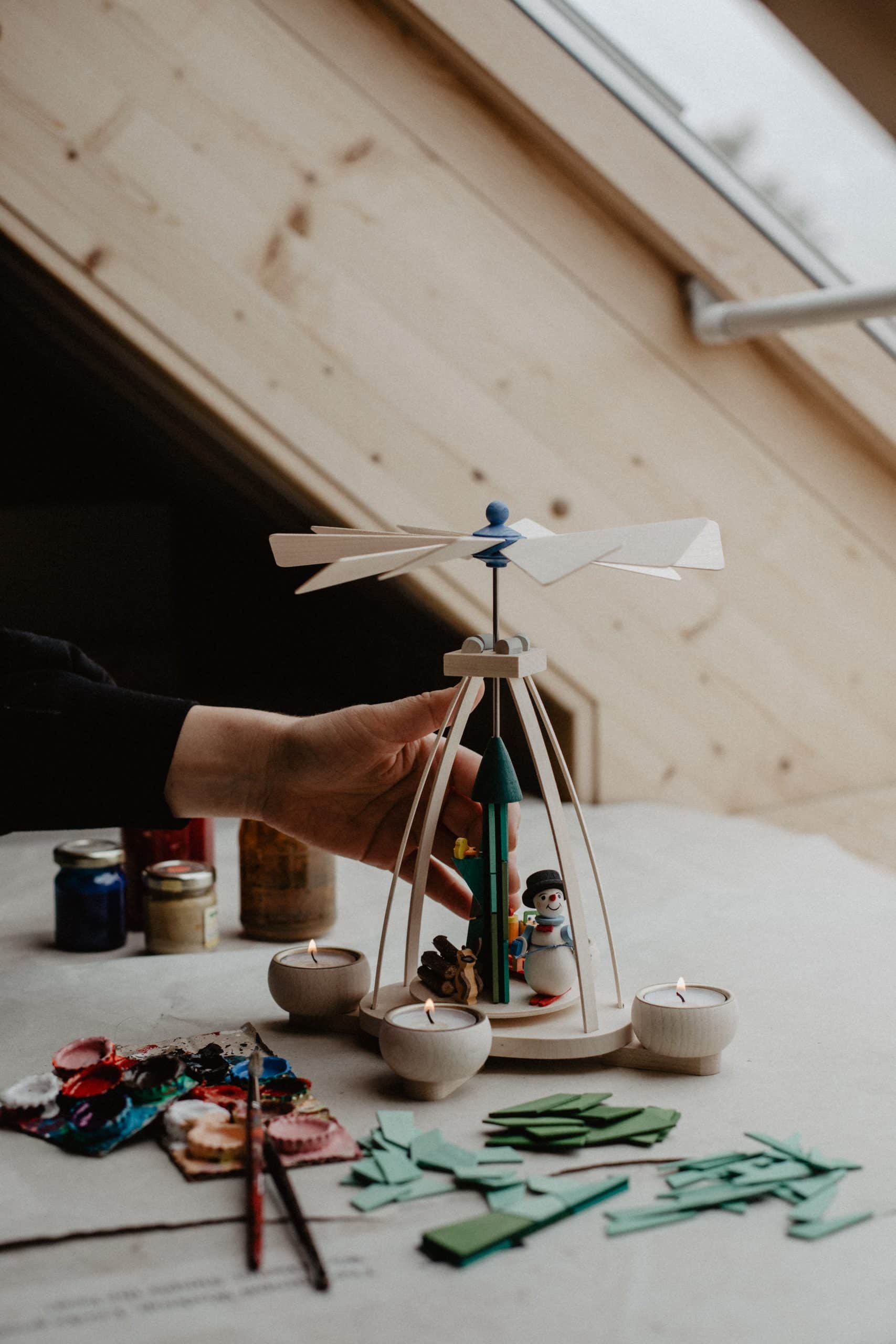 Seit mehr als drei Jahrzehnten fertigt die inzwischen auf über zehn Mitarbeiter angewachsene Manufaktur auf 1000qm Produktionsfläche farbenfrohe Pyramiden, Spieldosen, Christbaumschmuck und andere Miniaturen in unverwechselbarem Design.