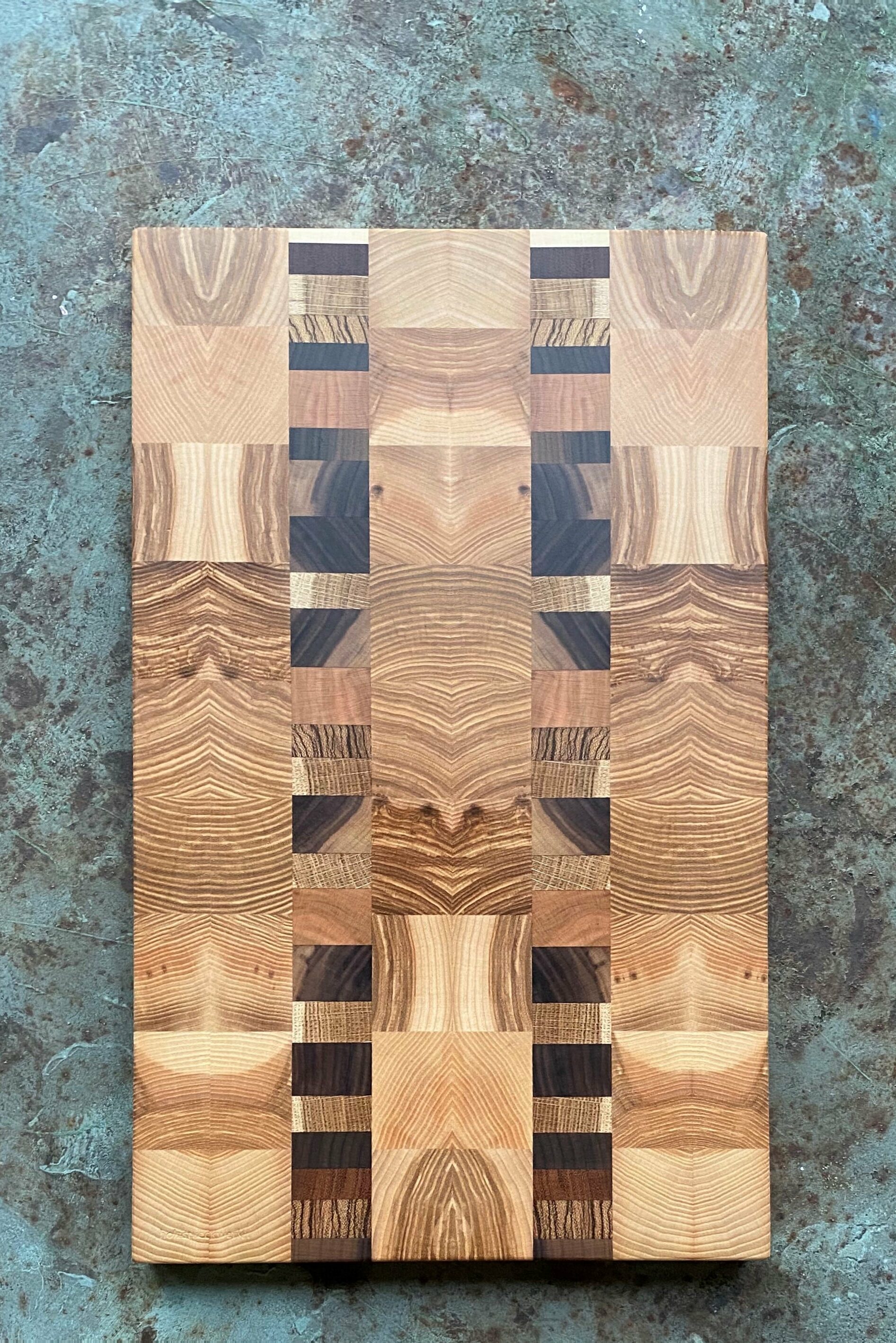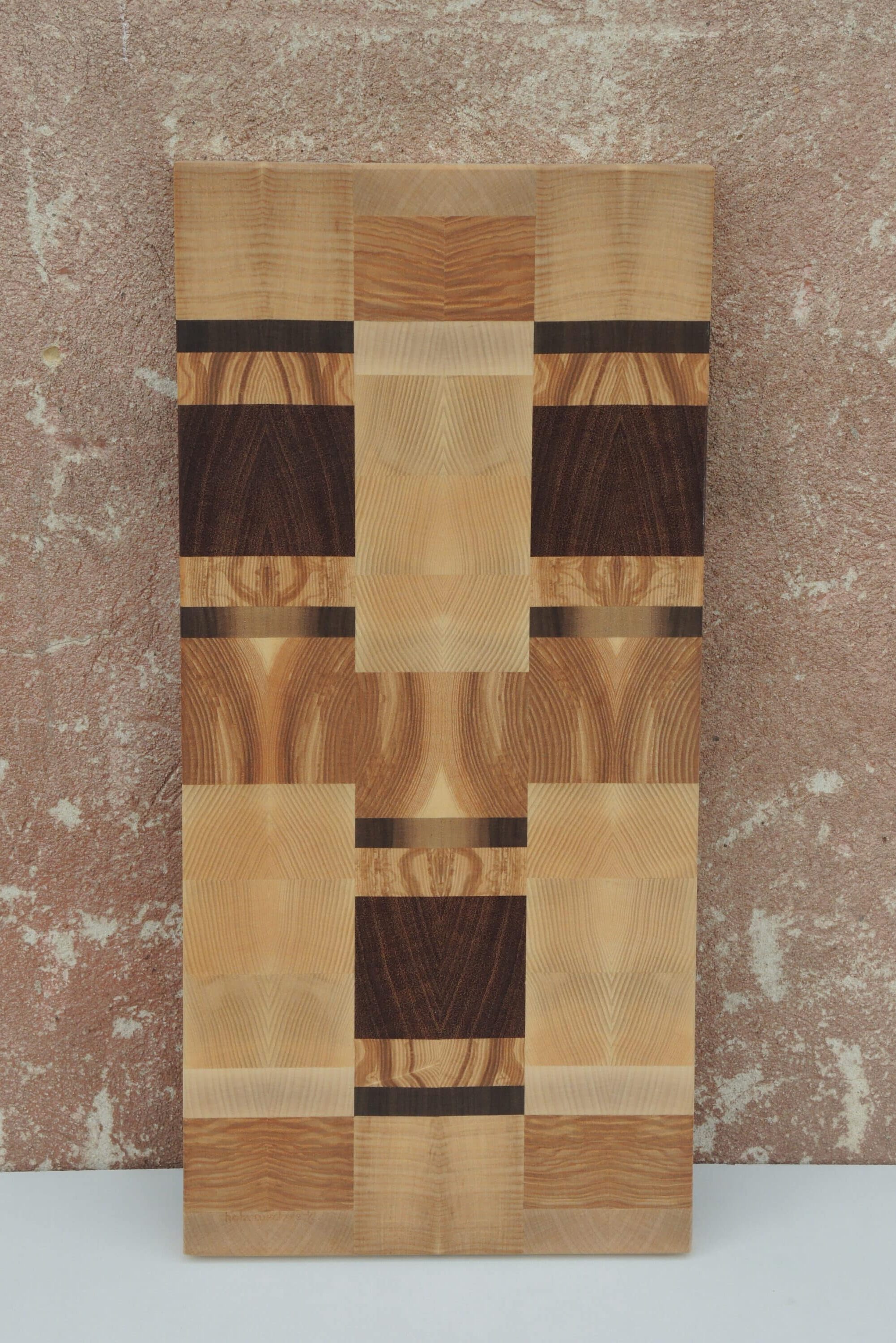 Seit über 20 Jahren fertigen sie ihre unvergleichlichen Hirnholzbretter für den täglichen Gebrauch in der Küche. Sie erstellen Tableaus aus quer zu Maserung aufgesägten Hölzern, bei denen die Holzfaser wie bei einer Bürste aufrecht stehen. Dafür werden Holzlatten nebeneinander verleimt, wieder aufgesägt und dann ihren Mustern entsprechend neu verbunden. Auf diese Weise werden die Jahresringe des Baumes sichtbar und es entstehen in vielen Arbeitsschritten überraschende Holzbilder, die noch dazu wie ein traditioneller Metzgerblock besonders robust und langlebig sind.