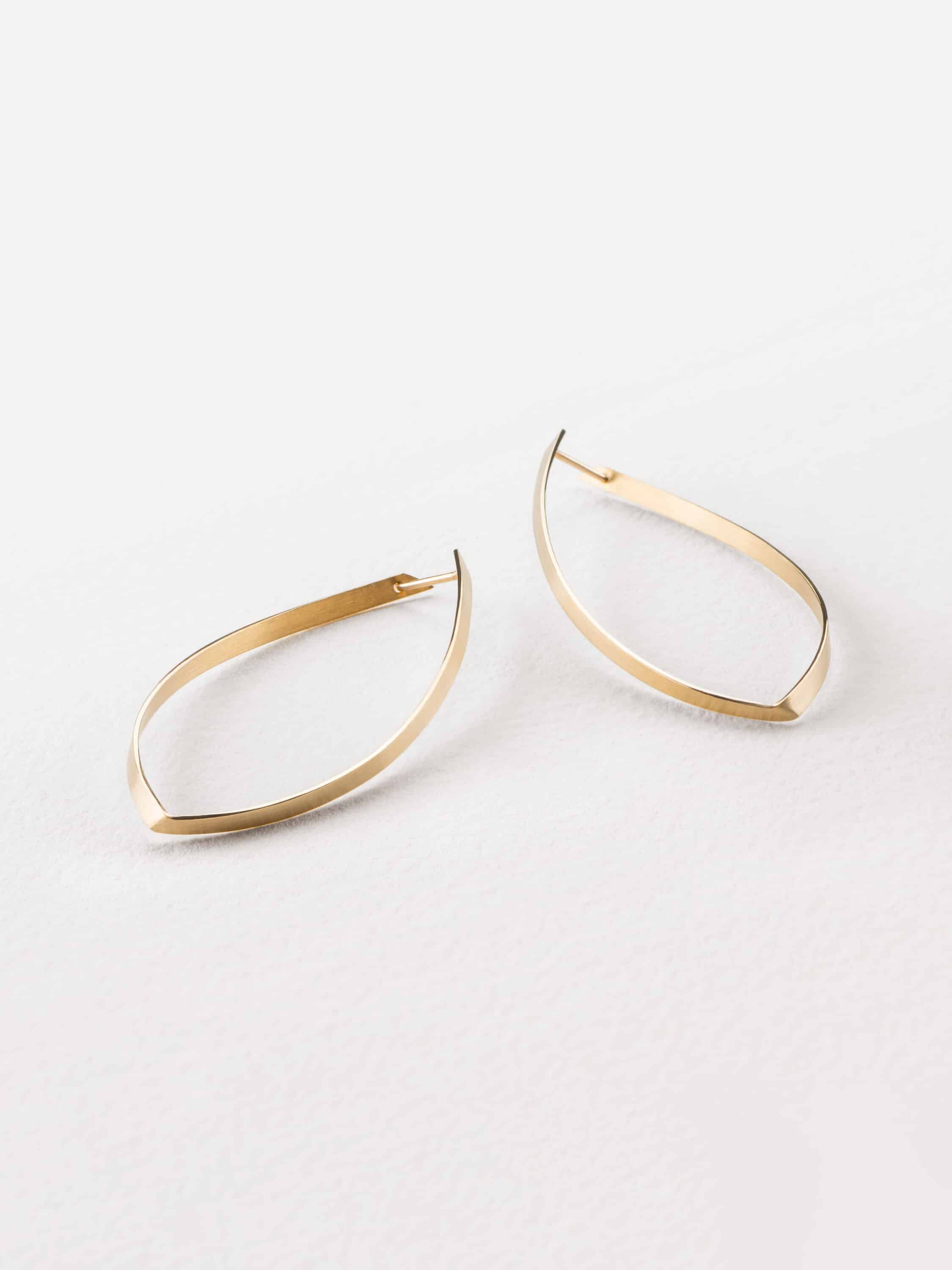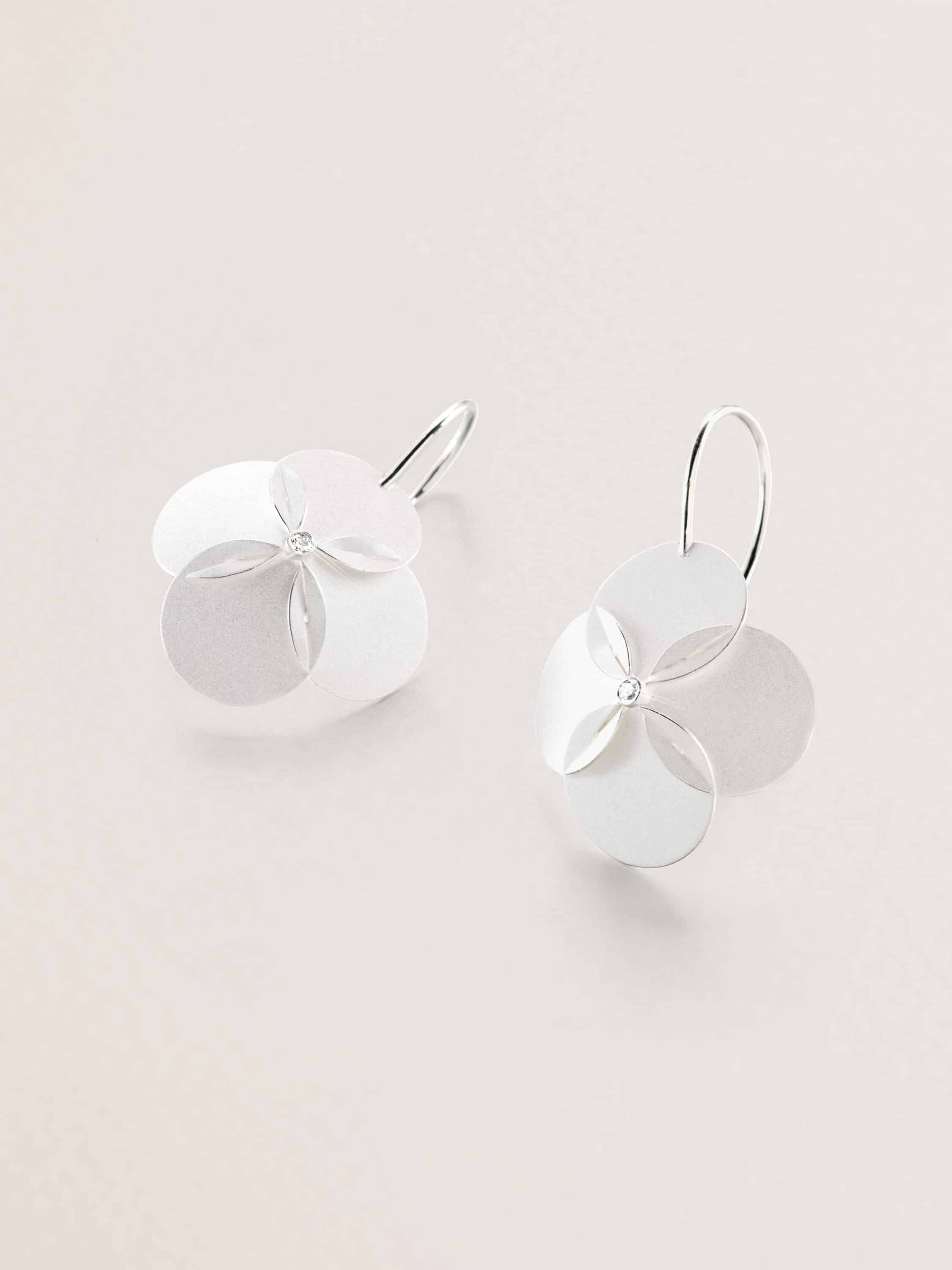 Geometrische Flächen ziehen sich wie ein roter Faden durch die verschiedenen Kollektionen, woraus durch Steck- und Falttechniken die einzelnen Schmuckstücke entstehen. Es entsteht ein faszinierendes Spiel von Licht und Schatten und eine architektonisch klare Ästhetik, die viel Leichtigkeit ausstrahlt.