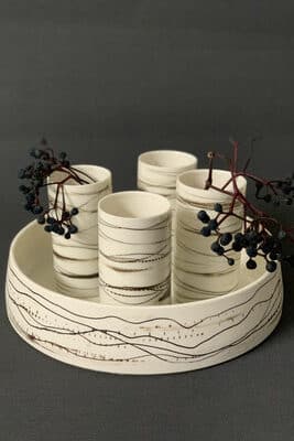 Die gelernte Keramikerin Viktoria Benedek wagte 2010 den Schritt in die Selbstständigkeit und fertigt kleine, individuelle und zeitgenössische Serien von Gebrauchskeramik in verschiedenen Farben, sowie eine Porzellangeschirrserie.