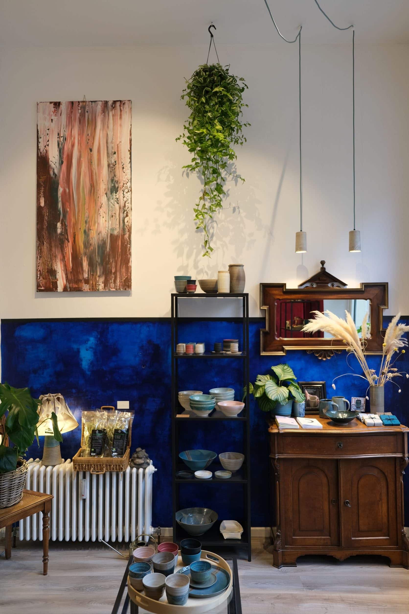 Im Anschluss wird die Schrühware mit Glasur veredelt. Erst nach einem zweiten Brand bei 1220°C sind die modernen Steinzeugstücke fertig und gehen in den Verkauf in den Keramikladen.