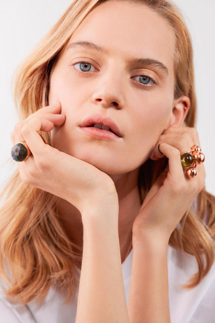 Dafür hat die in Hamburg ansässige Designerin unterschiedlichste Einflüsse in ihren Kreationen aufgenommen, die von vielen Orten dieser Erde geprägt sind. Denn vor allem das Reisen inspiriert sie immer wieder aufs Neue. Von überall aus der Welt bringt Marjana von Berlepsch Impulse und Materialien mit, nimmt diese aber aus ihrem ursprünglichen Kontext und setzt sie für ihre individuellen Designs neu und unkonventionell zusammen. Unterschiedliche Kulturen und Traditionen wirken dabei wie Puzzleteile, die nicht auf Anhieb passen wollen, sich am Ende aber doch zu einem harmonischen Ganzen ineinanderfügen. Zu Schmuckstücken also, die Persönlichkeit, Kreativität, Natürlichkeit und Farbigkeit miteinander verschmelzen und dabei etwas ganz Eigens entstehen lassen. Auch die Material- und Formvielfalt ist groß: Edelsteine und -metalle, Leder, Horn, Hölzer, Muscheln, Perlen, Strass und Resina. Kugeln, Plättchen, grobe und feine Glieder – die Auswahl ist genauso umfassend wie das abwechslungsreiche Sortiment aus Armbändern, Ohrringen, Ringen und vor allem Ketten, das zwei Mal im Jahr dem Modezyklus folgend ergänzt wird.