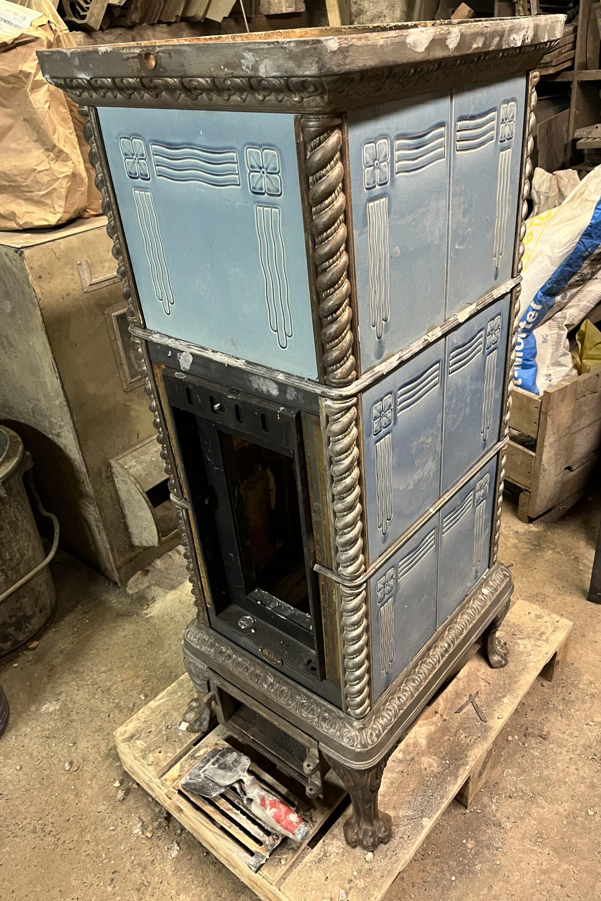 Jedes der Einzelstücke wird zum Neuaufbau vollständig in seine Einzelteile zerlegt. Die gusseisernen Teile und Kacheln werden bestmöglich aufgearbeitet und der gesamte Ofen wieder neu errichtet. Die Außenhülle des Kachelofens wird weitgehend erhalten und stabilisiert, sodass altersgemäße Gebrauchsspuren durchaus sichtbar bleiben dürfen, die volle Funktion aber gewährleistet ist. Keramik-Kacheln werden repariert und retuschiert, nicht aber aufwändig erneuert. Sollte einmal ein gusseisernes Teil irreparabel kaputt sein, so findet sich oft ein passendes Teil im Ersatzteillager, welches nach über 40 Jahren des Sammelns und Aufbewahrens gut gefüllt ist.