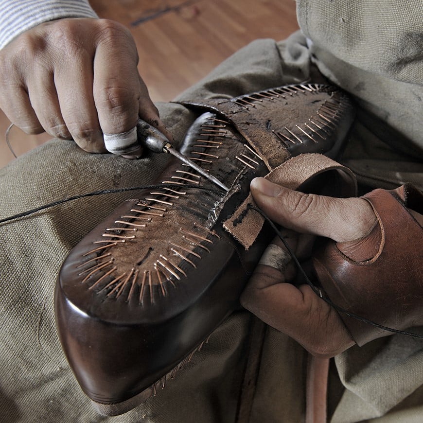 Zurück in Deutschland kam er in Berührung mit handgemachten Schuhen und verliebte sich sofort in den komplexen Prozess des Schuhmachens. Nach einer Ausbildung zum Maßschuhmacher machte er sich selbstständig und arbeitet seit 2009 in seiner eigenen Werkstatt.