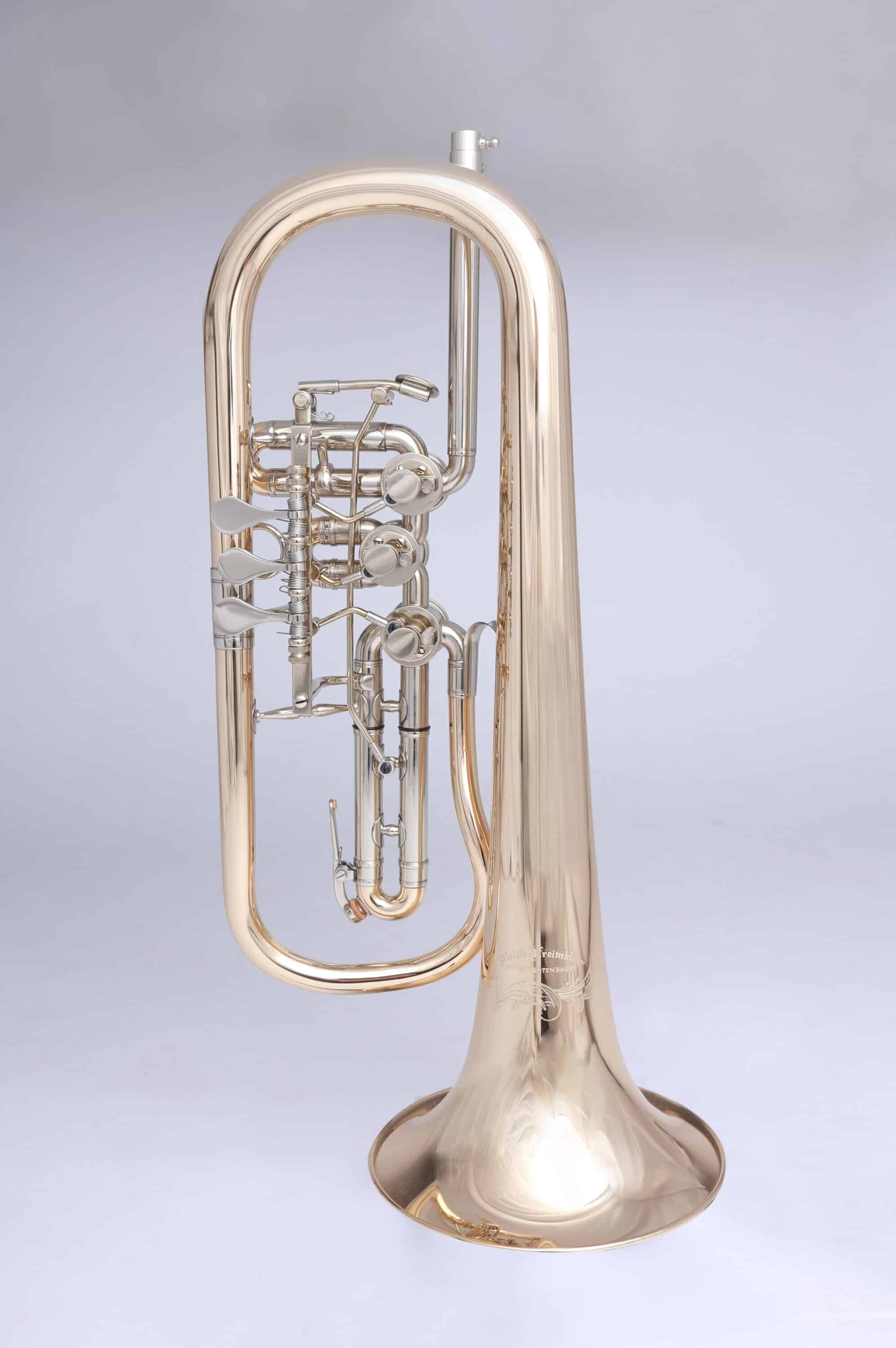 Gerade das Baritonhorn aus Neusilber begeistert Musiker*innen immer wieder, da „klanglich ein Waldhorn mitschwingt“.