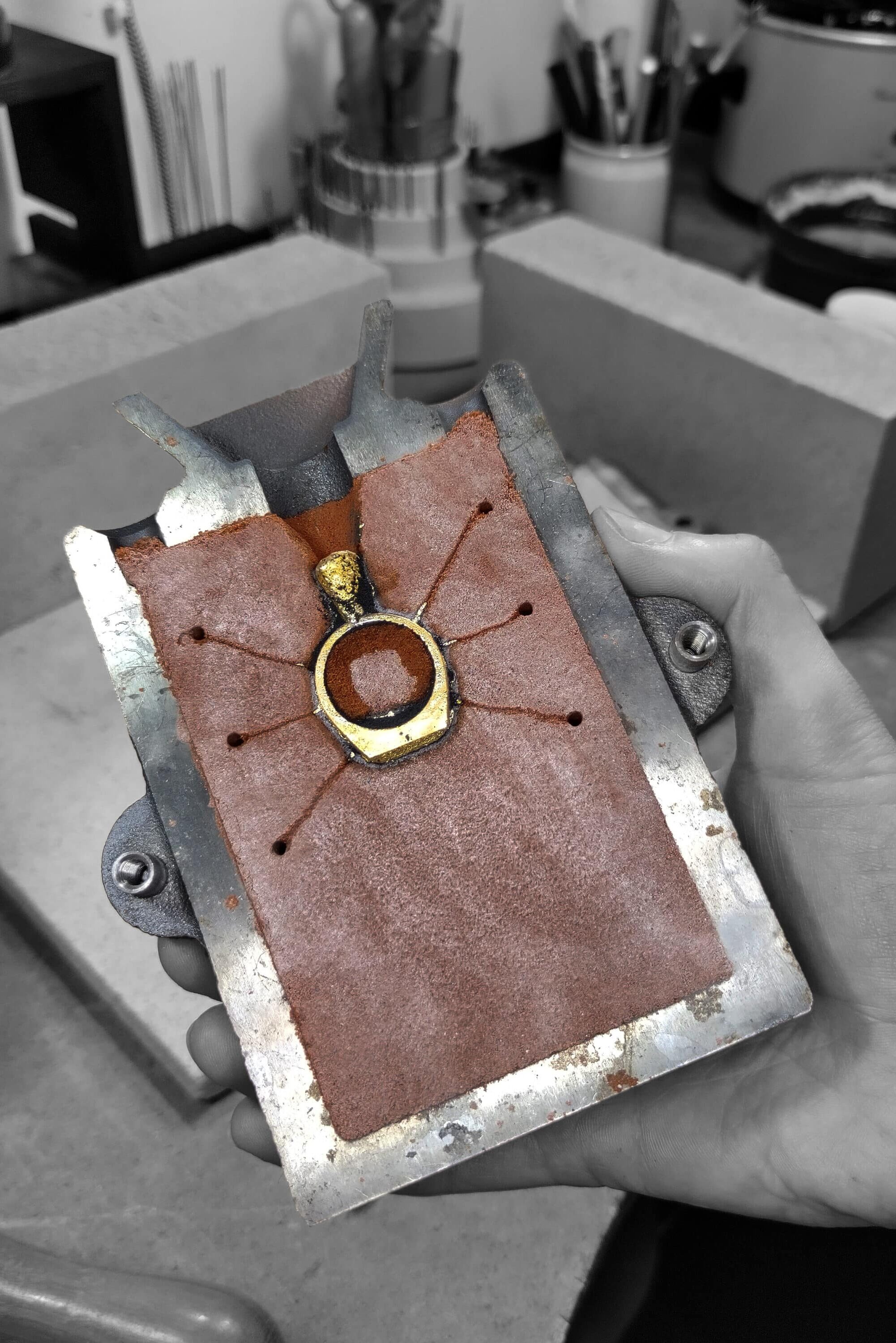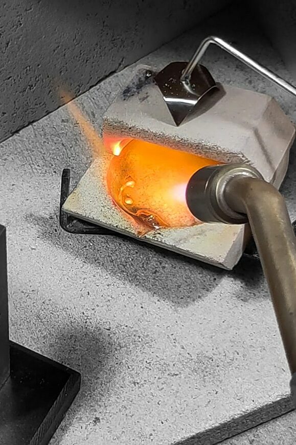 In Robyns Goldschmiede findet man keine Massenprodukte. Jedes Schmuckstück wird von Hand nach ihren eigenen Entwürfen gefertigt. Handgefertigt bedeutet, dass die Schmuckstücke aus Rohstoffen wie Golddraht und Silberblech hergestellt sind. Dies unterscheidet sich stark von konventionellen Schmuckstücken, bei denen genau dasselbe Stück mehrmals nachgebildet werden kann. Der Herstellungsprozess verleiht Robyns Arbeit einen Sinn für Individualität und schafft eine tiefere Verbindung zwischen ihr und den Trägern und Trägerinnen.