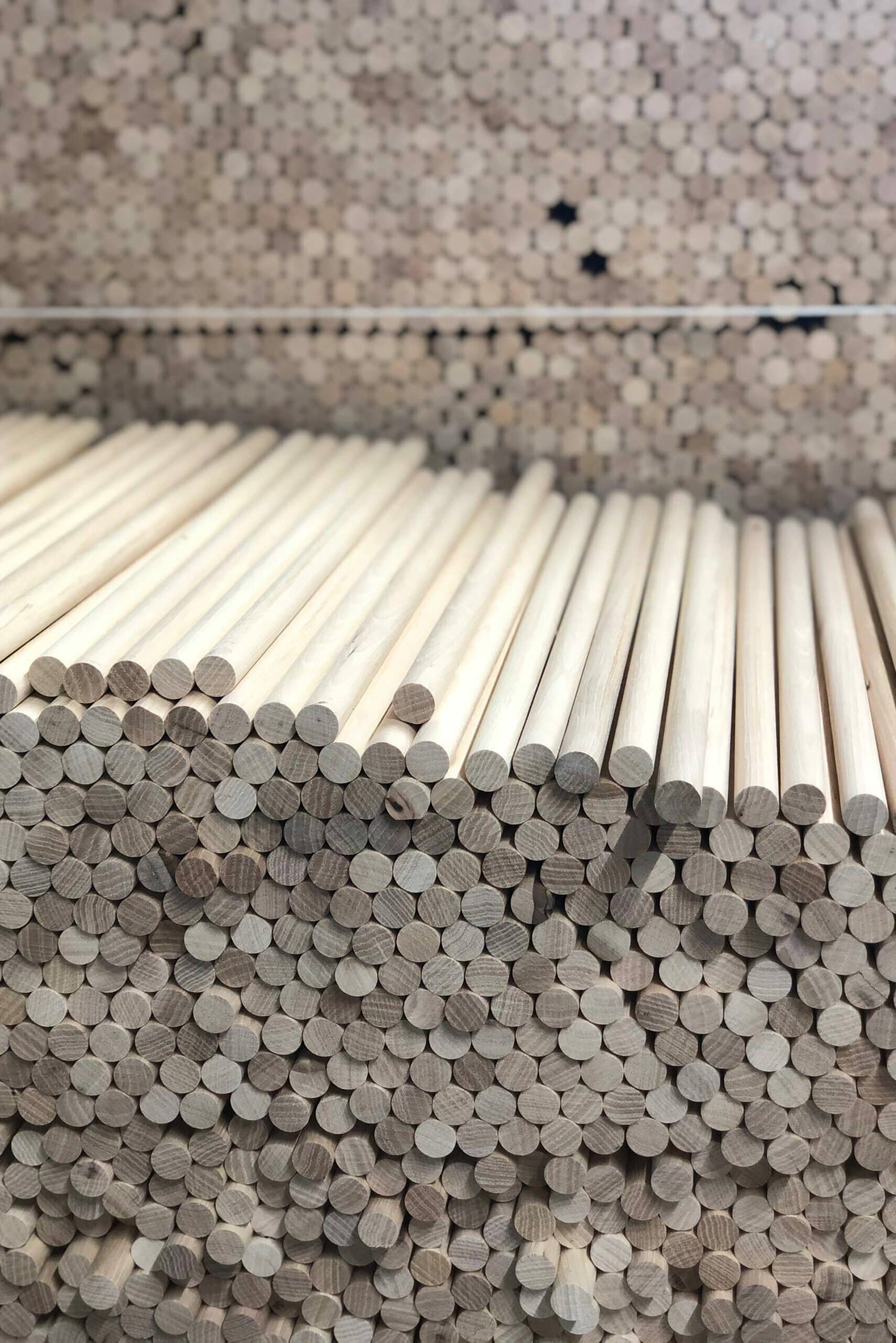 Um Abfälle zu reduzieren, sucht Rohema immer nach Möglichkeiten der restlosen Verwertung. So entstand z.B. ein Frühstücksbrettchen inkl. Messer, gefertigt aus Hickory Resten, die für die Drumstickproduktion nicht geeignet sind.