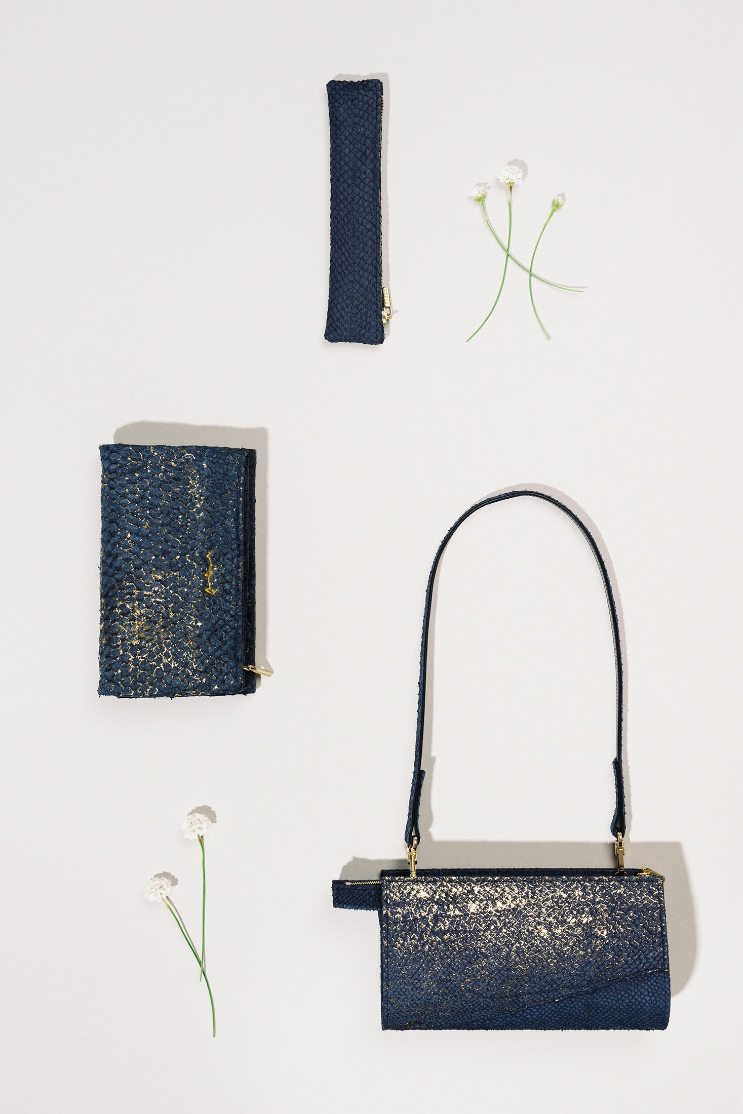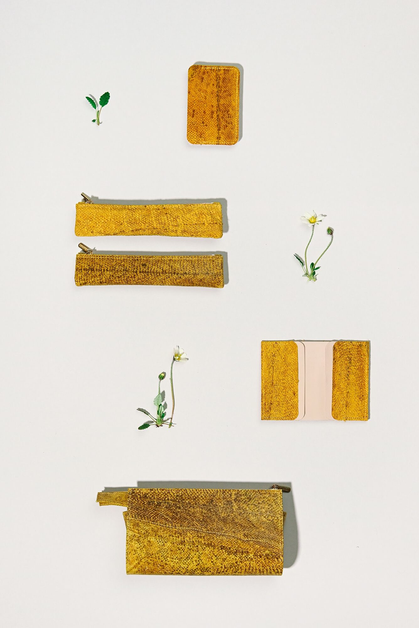 Solche eleganten Lederaccessoires – aus Fischleder? Ja! Tatsächlich fertigt Annekatrin Döll ihre Produkte, die sie in Kleinserien in ihrem Atelier in Leipzig-Leutzsch herstellt, aus Leder vom Lachs, Dorsch und Barsch – und zuletzt auch vom Seewolf. Die von ihr genutzten Fischhäute werden mit Hilfe eines traditionellen Gerbverfahrens zu geschmeidigen und haltbaren Ledern verarbeitet.