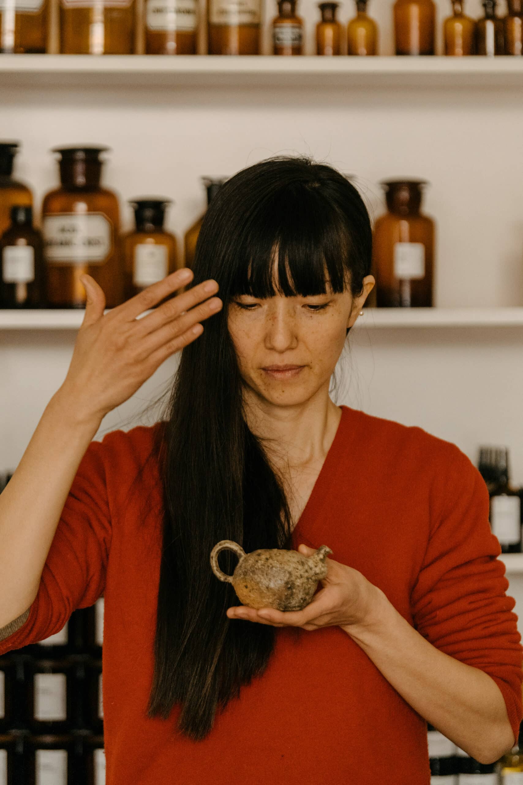 Die Arbeit mit ätherischen Ölen, die als die „Seelen“ der Pflanzen bezeichnet werden, ist Teil von Ryokos japanischen Erbes, das auf den Shinto-Glauben zurückgeht. Demnach wohnen Gottheiten, die Kami genannt werden, in der Natur. Respekt und Wertschätzung für die Natur sind tief in ihrer olfaktorischen Praxis verwurzelt. Sie glaubt auch an etwas Unsichtbares und Unaussprechliches. Es ist ein Raum für Träume – das ist es, was sie versucht, zu pflegen und zu nähren, besonders in ihren Duftkreationen.