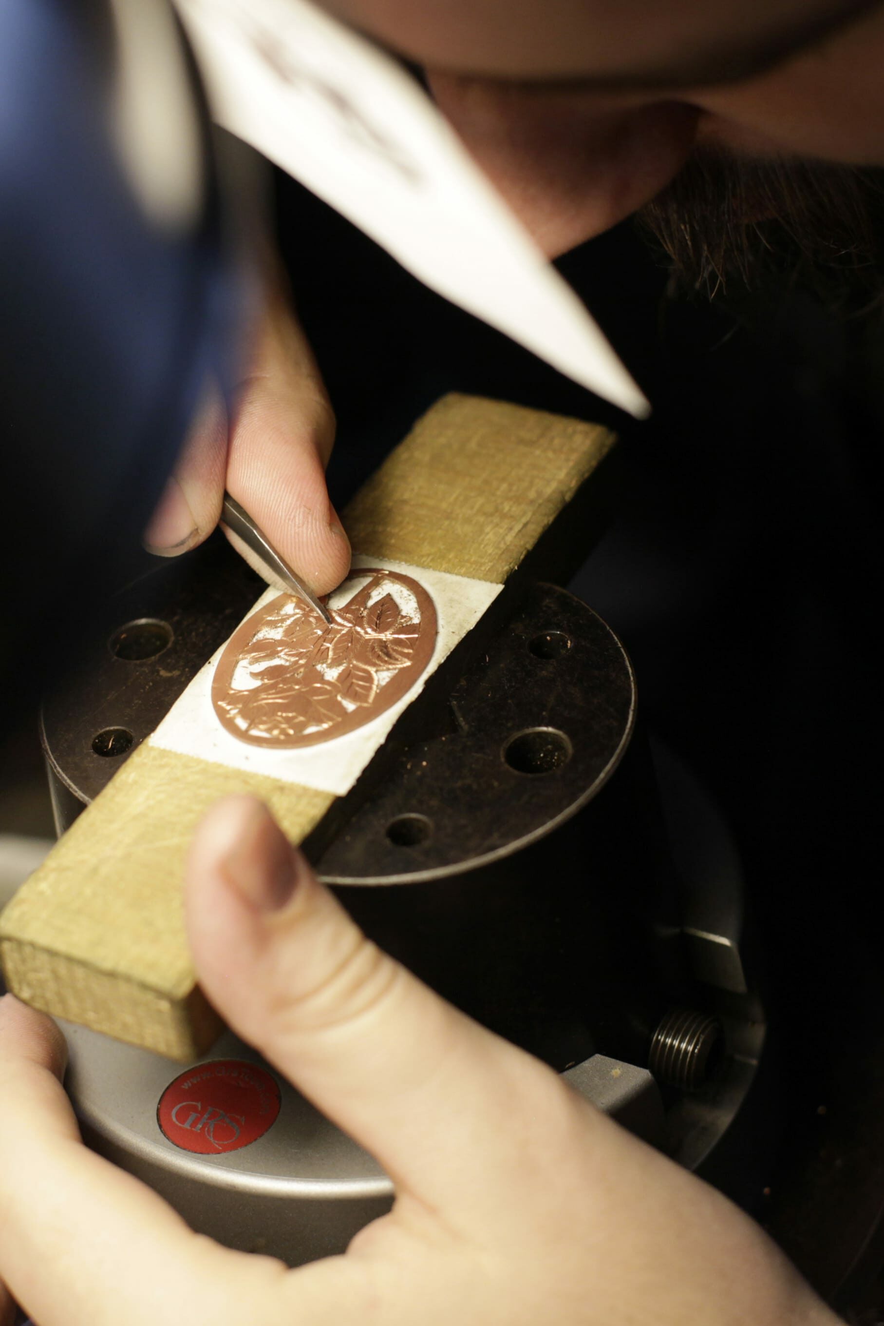 Entwurf von Produkt und Motiv … für einen zeitgemäßen Gebrauch – Schließen für Bücher, Namensschilder für Notenmappen, Wasserkaraffenuntersetzer oder … für Bekanntes – Medaillon, Eßbesteck, Feuerzeug, Messer, Jagdwaffe. Die Entwürfe überträgt Philipp Tuve auf Kupfer-, Messing- oder Silber und schneidet mit diversen Handsticheln die feinen Linien und Schattierungen. Die Gravur erfreut, schmeichelt der Hand des Betrachters, ebenso seinen Augen.