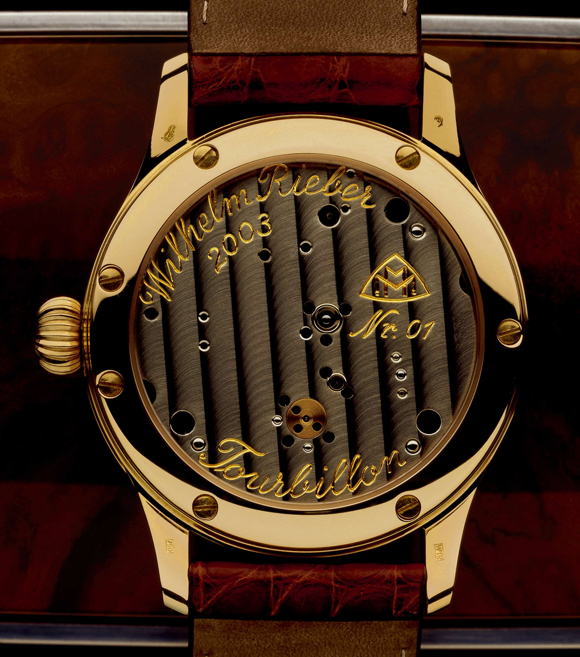 Rieber hat sich erstmals in den 1980ern intensiver mit der Mechanik auseinander gesetzt. Damals besuchte er die Meisterschule in Villingen-Schwenningen und war fasziniert von dem ästhetischen Design und der außergewöhnlichen Konstruktion des Tourbillons. Schnell war ihm klar, dass er unbedingt selbst eine solche Uhr entwerfen wollte. Er las sehr viele Bücher und tüftelte vier Jahre an dem komplexen Gebilde, bis die Uhr endlich fertig war.