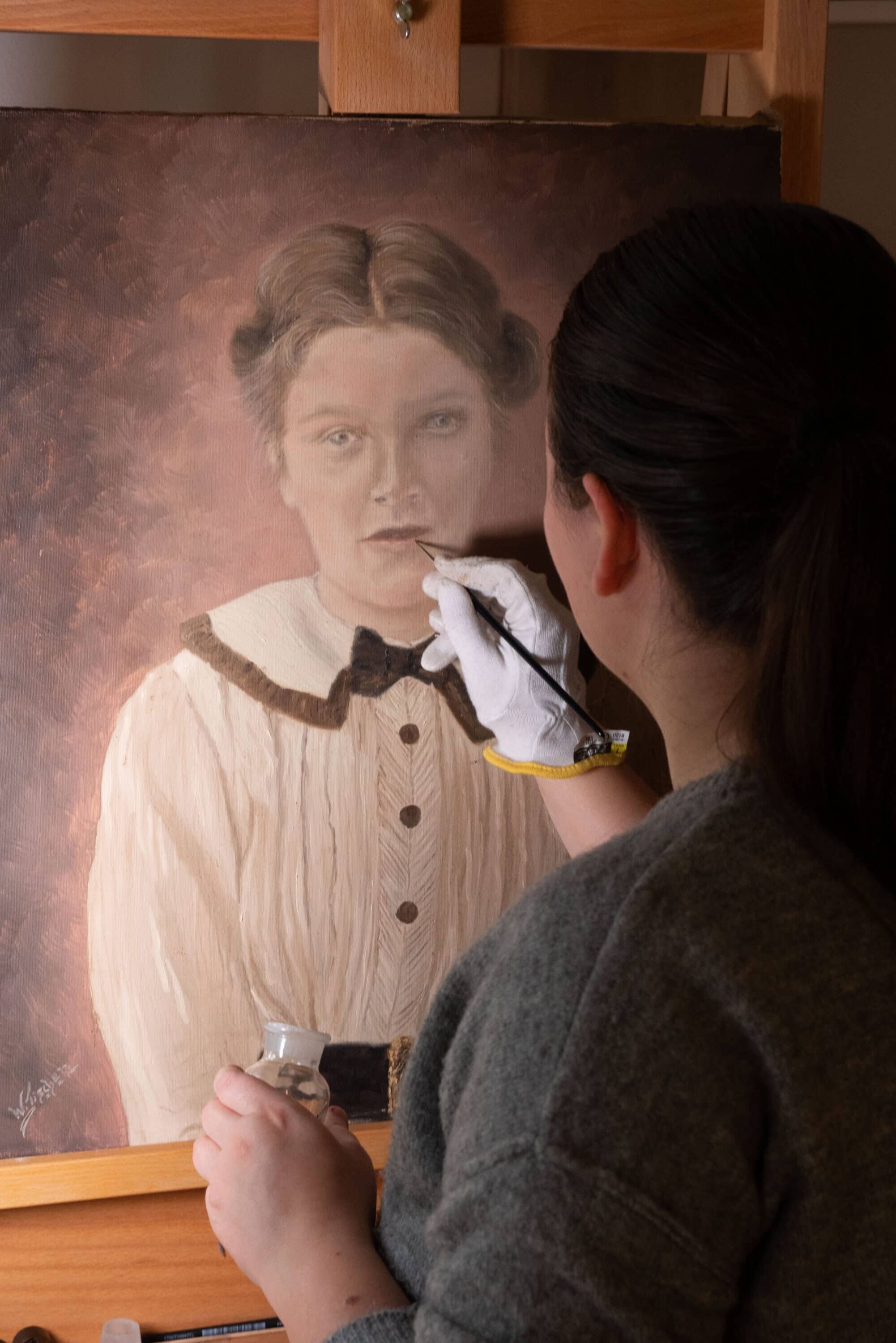 Im Atelier werden nicht nur Objekte mit verschmutzen Oberflächen oder vergilbten Überzügen behandelt, sondern auch Gemälde, die beispielsweise Risse oder Löcher im Gewebe aufweisen oder Skulpturen und Rahmen denen Teile der Schnitzerei oder Vergoldung fehlen. Bei Gemälden kommt es in diesen Fällen zu Einzelfadenverklebungen oder Gewebeintarsien, wobei die Fäden unter dem Mikroskop einzeln wieder miteinander verbunden oder verlängert werden.